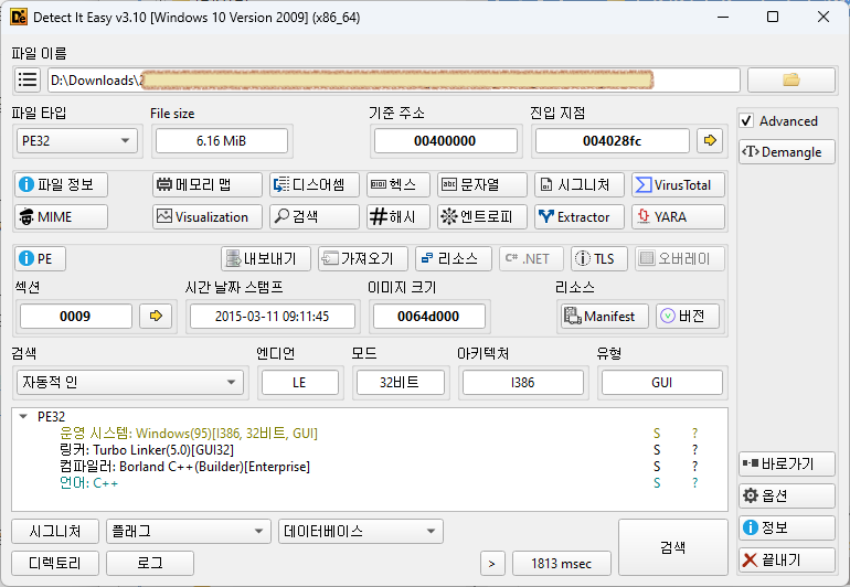 - 실행 파일이 어떤 프로그래밍 언어로 개발되었는지를 확인해주는 프로그램