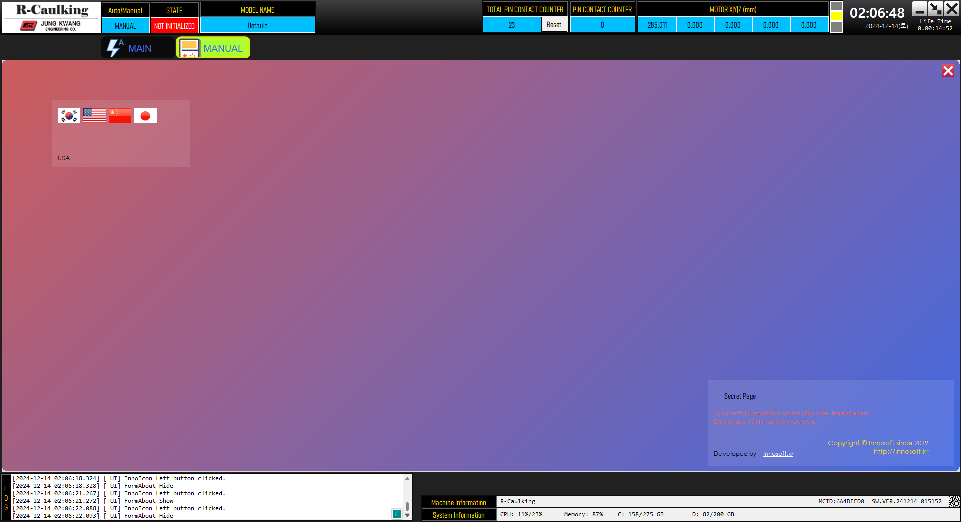 J사 R-코킹 설비 소프트웨어 개발 납품.