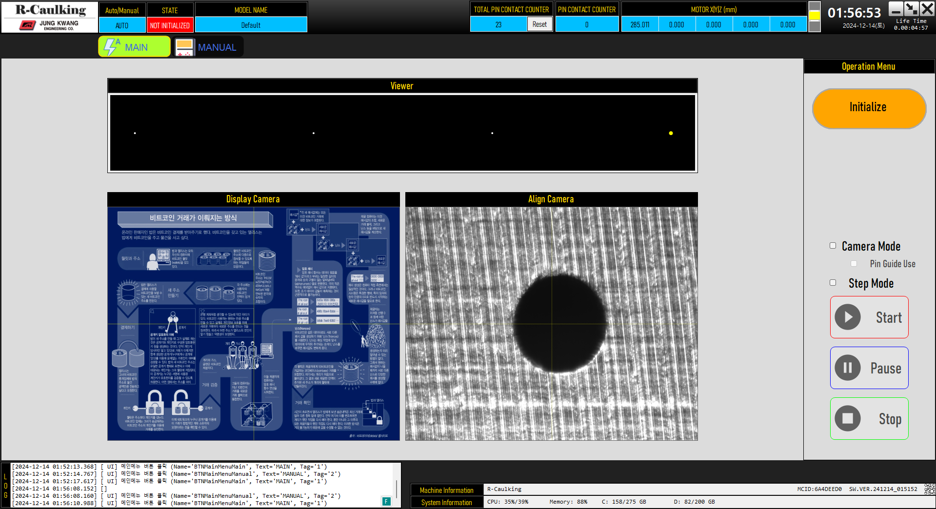1) 가공 중인 PIN 위치 실시간 표시